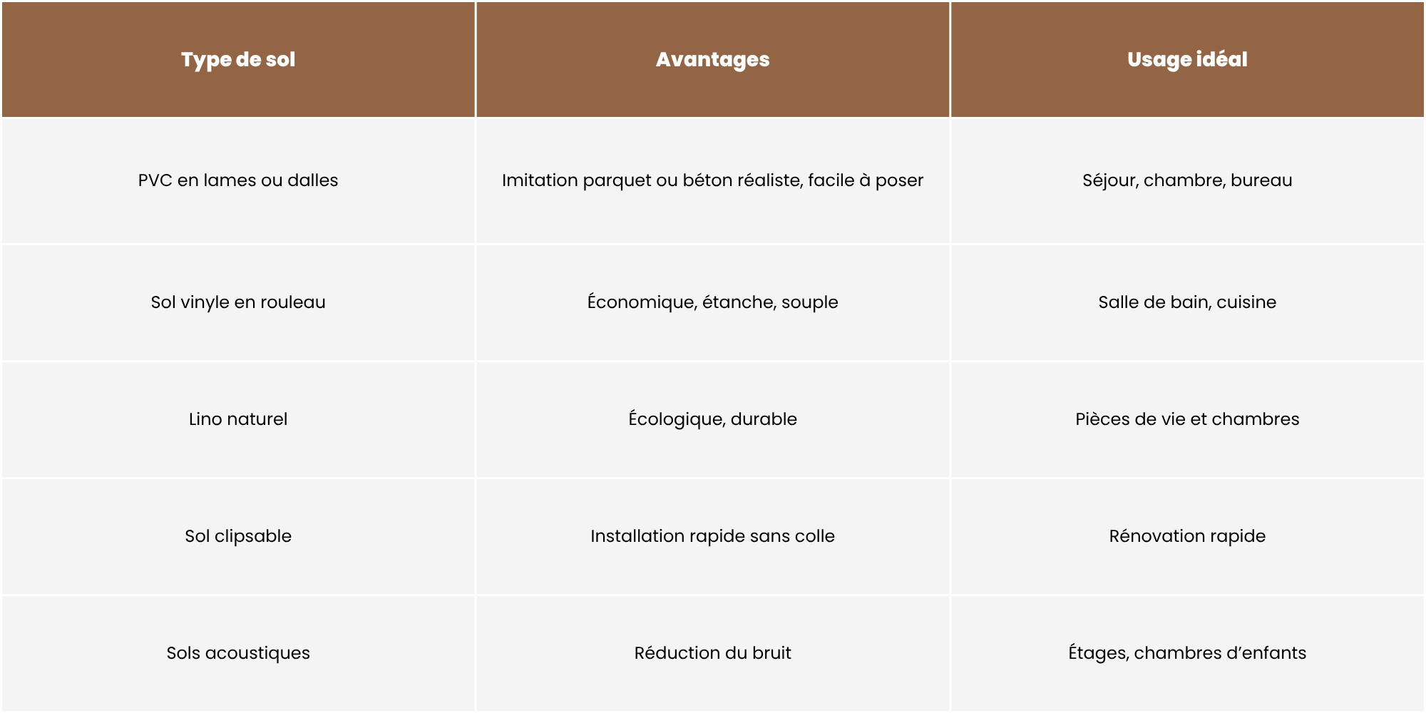 Nous posons le sol selon la méthode adaptée (collé, clipsable, semi-libre), en respectant les joints, alignements et sens de pose.